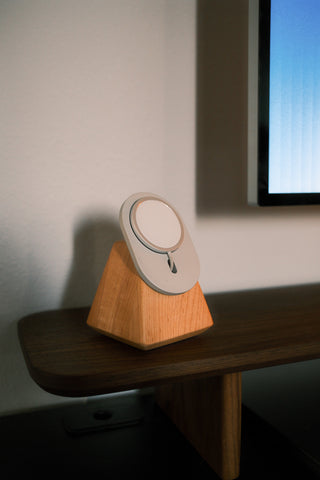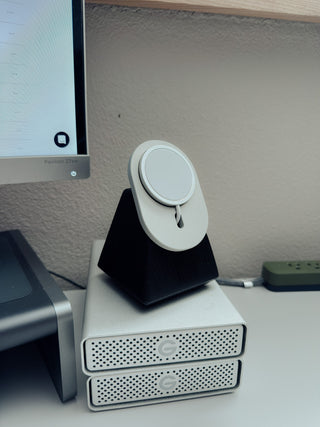 The Monolith cradles your MagSafe charger (not included) in a precision-milled aluminum holder, providing a stable, secure magnetic connection for iPhone 12 and newer. The geometric form is engineered for the ideal viewing angle—whether you're on video calls at your desk or using StandBy mode on your nightstand. No wobble. No sliding. Just a clean, reliable charge every time.